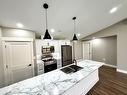 Luxury two bedroom, two bath retirement semi-detached home in quiet sub-division. 1370 square feet of living space in this unit. Engineered hardwood and ceramic flooring throughout. Master bedroom features a three piece ensuite and a very generous walk-in closet. The main floor laundry also doubles as a four piece bathroom conveniently located off the kitchen and second bedroom/den. The attached garage is heated, wired and finished plus is comes with a remote garage door opener and a large storage room for the things you need only occasionally. Swing by and take a peek. Premises renter occupied. Need 48 hours notice for showing appointment. Property being sold "as-is", no Property Condition Statement. Vendor has never occupied the home.